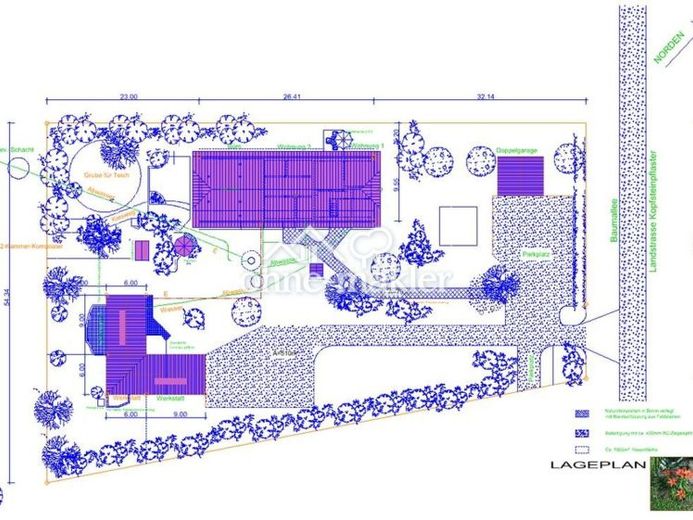Das Nebengebäude untergliedert sich in ein separates Wohnhaus und einen Werkstattteil. Der Werkstattteil ist nicht ausgebaut.