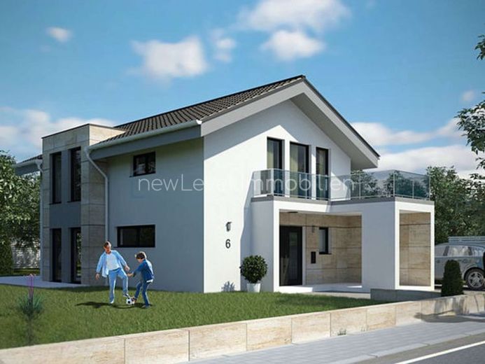 Zeitlos klassisch in der Moderne – Das Einfamilienhaus überzeugt auf 135 m² Wohnfläche und 2 Geschossen mit einem harmonischen Wohnkonzept. Die klassische Architektur mit Satteldach wird durch einen markanten Flachdacherker ergänzt, der die Fassade auflockert und das Design modern abrundet.