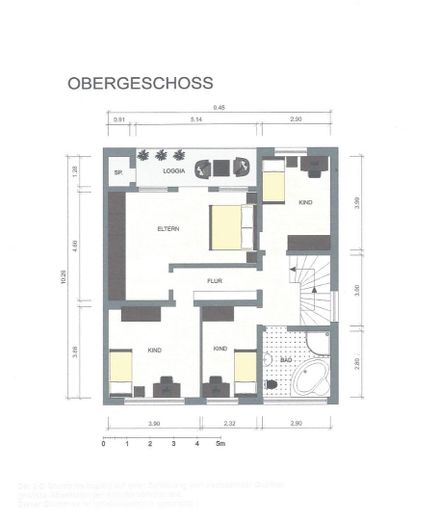 Drei gemütliche Kinder-/Schlafzimmer, ein großes Elternschlafzimmer mit direktem Zugang zum Balkon, sowie ein helles Badezimmer mit Dusche, Badewanne und Fenster.
