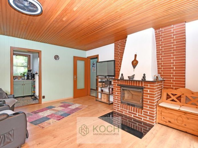 Wir können Ihnen hier ein kleines aber feines Wohnhaus in einem Wochenendhausgebiet in der Natur anbieten. Es wird aber ein *Erstwohnsitz geduldet, so dass Sie sich hier anmelden können. Das Haus steht auf einem größzügigen Grundstück in Südausrichtung und bietet ein schönes Wohnzimmer mit Kamin und Blick in den großen Garten. Hiervon gelangt man in die zweckmäßige Küche und auf den Flur. Von diesem aus gelangt man in das Schlafzimmer, das Büro und das Duschbad. Auch ist ein Spitzboden und ein Teilkeller (Hausanschüsse usw.) vorhanden.