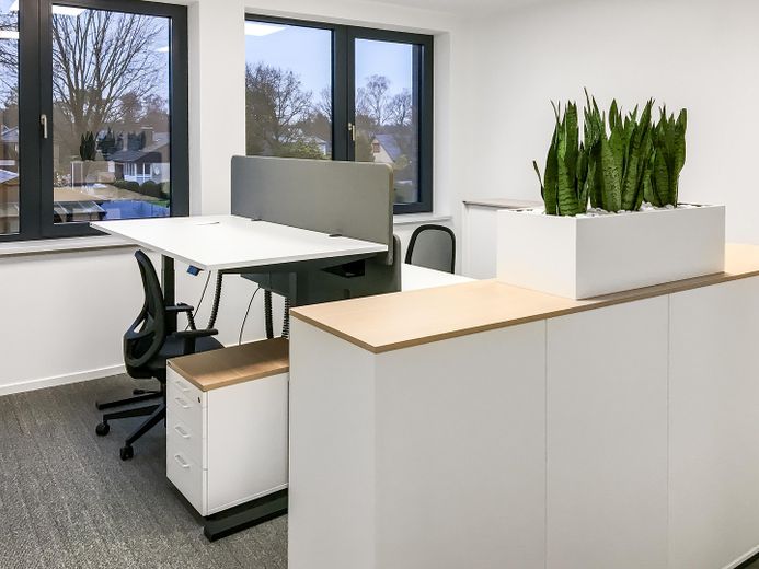 Die Lage im verkehrsberuhigten Mischgebiet bietet ein ruhiges Arbeitsumfeld, der direkte Autobahnanschluss sichert gute Erreichbarkeit (30 Minuten in die Hamburger Innenstadt).