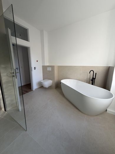 Die Erdgeschosswohnung besticht durch einen durchdachten und modernen Grundriss, der ein angenehmes, offenes Wohngefühl vermittelt. Das Highlight bildet das luxuriös ausgestattete Badezimmer mit großer Walk-in-Dusche und komfortabler Badewanne, das keine Wünsche offen lässt.