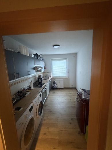 Die großzügige Wohnfläche von rund 80,5 m² verteilt sich auf ein lichtdurchflutetes Wohnzimmer, zwei Schlafzimmer, eine Küche mit Einbauküche sowie ein Badezimmer mit Badewanne. Ein Kellerraum gehört ebenfalls zur Wohnung.