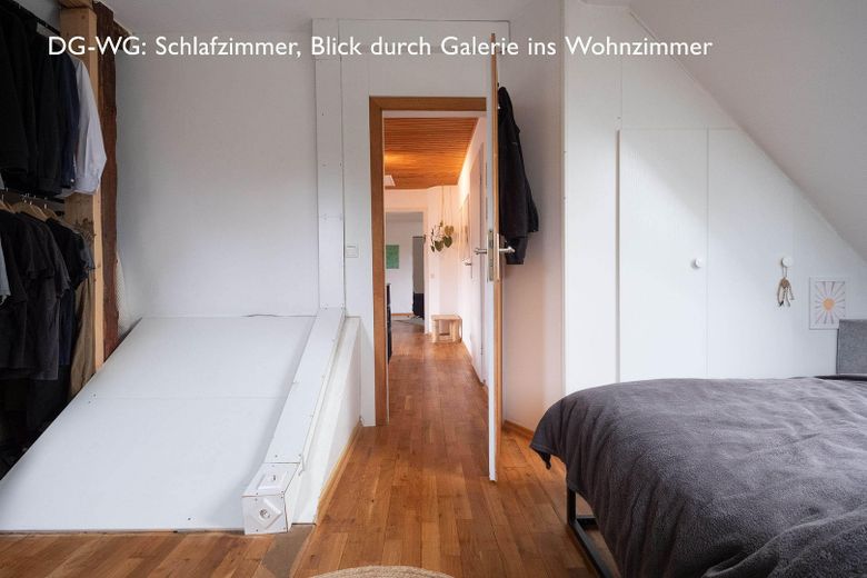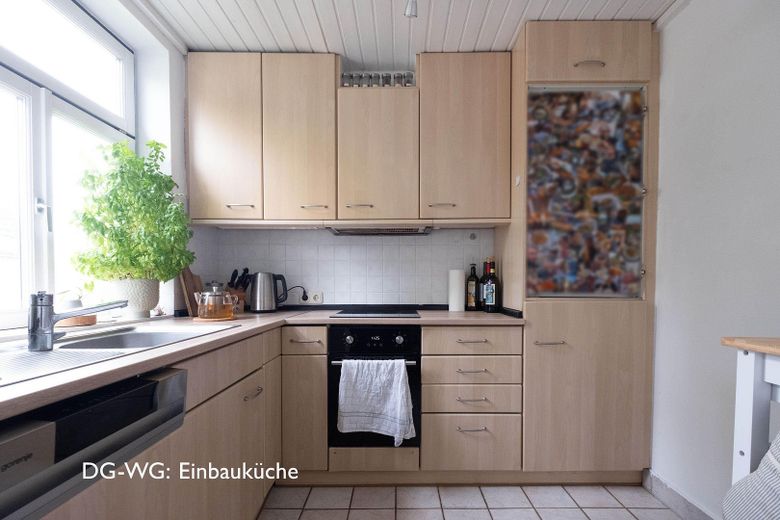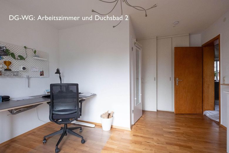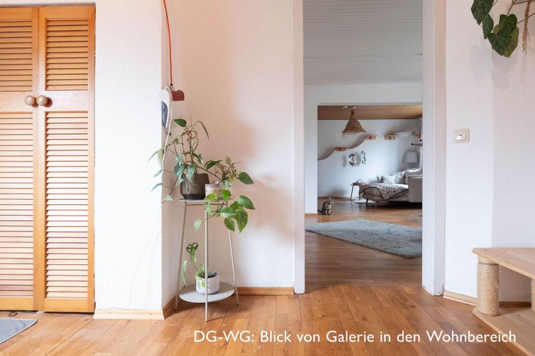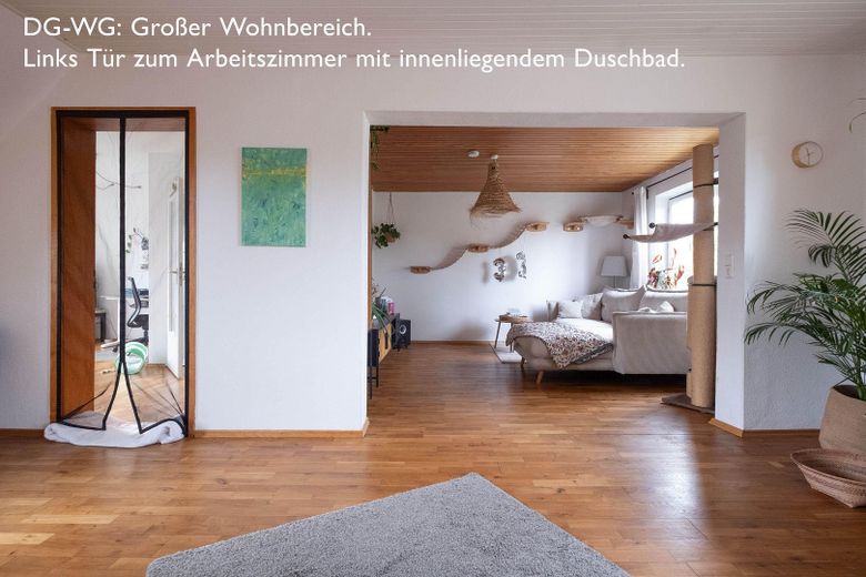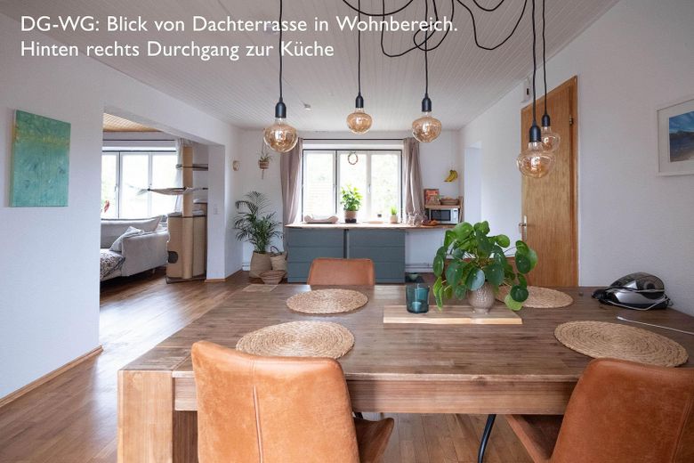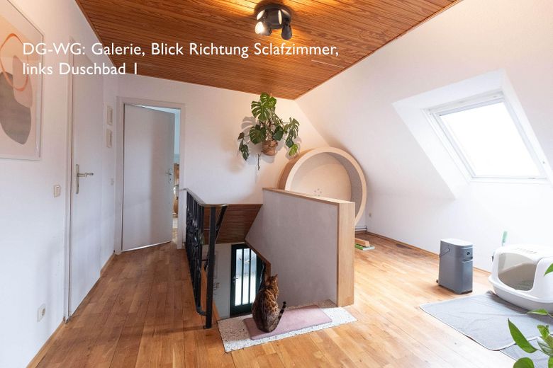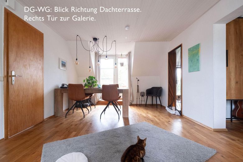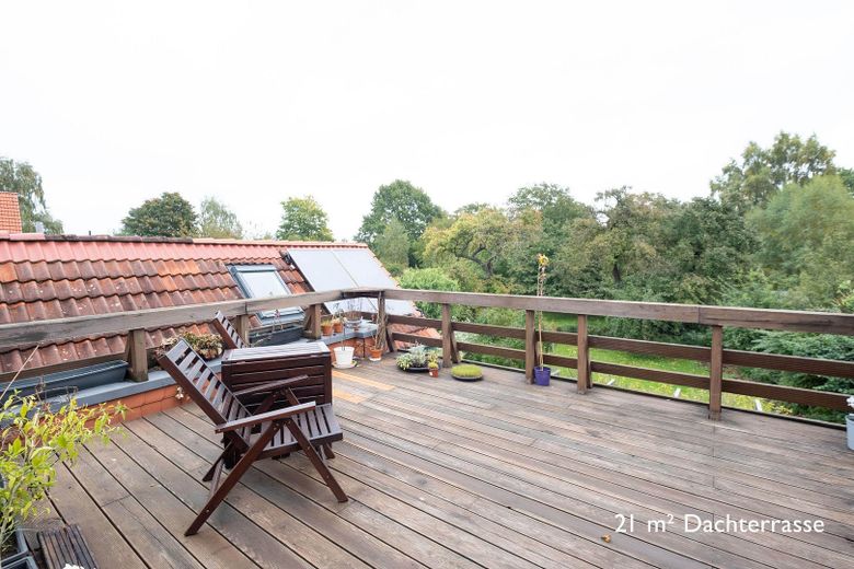 eine im Dachgeschoss (91 m²) mit einer sonnigen 21 m² Dachterrasse mit Blick ins Grüne