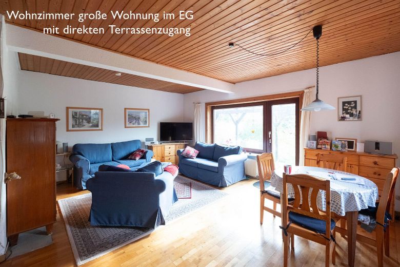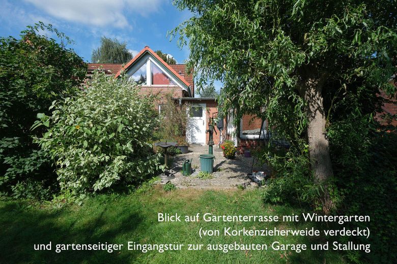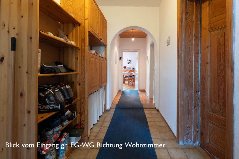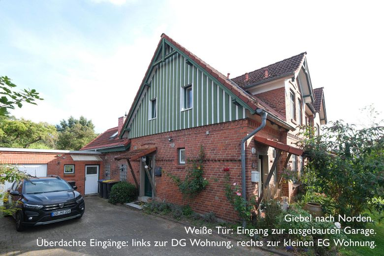 Die Fotos zeigen das Haus, den Garten, die große Wohnung im Erdgeschoss, die Dachgeschosswohnung, Nebenräume und Dachboden sowie den 2020 ausgebauten ehemaligen Garagen- und Stallbereich. Fotos der kleinen Wohnung folgen in Kürze.