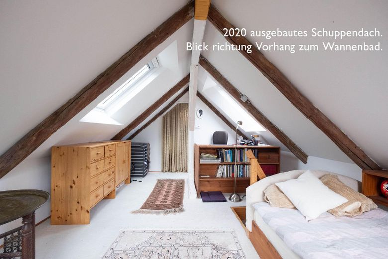 Das Dach wurde 1990 neu eingedeckt und ist dicht, sollte aber in den kommenden 5–10 Jahren erneuert werden. Dies wäre eine gute Gelegenheit, den Dachboden teilweise zu weiterem Wohnraum auszubauen.