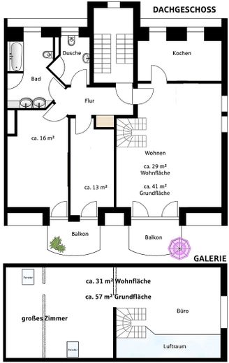 Diese attraktive DG-Maisonette-Wohnung in der zweiten Etage ist für eine Familie ein Wohntraum. Bodentiefen Fenster sorgen für viel natürlichen Lichteinfall, während die nach Westen ausgerichteten Balkone sonnige Tage ideal genießen lassen. Neben viereinhalb einladenden Zimmern zählen zu der Wohnung zwei separate Badezimmer sowie eine große Galerie. Ein aktueller Energieausweis liegt vor. Des Weiteren überzeugt der gute Schnitt, der sich auch für WGs eignet. Ein großer Kellerraum steht Ihnen außerdem zur Verfügung.