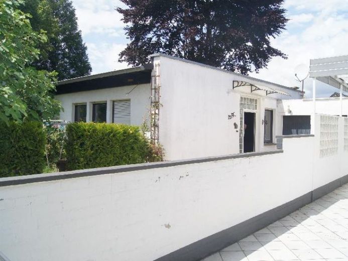 Zum Verkauf steht ein ruhig gelegener, massiv erstellter Bungalow aus 1966 mit Teilkeller. Das Rechteckige Grundstück mit 525 m² ist über die Jahre recht zugewachsen. Sie betreten das Haus über die geräumige Diele. Von hier erreicht man den Kellerabgang, das Gäste-WC die Küche, die beiden Kinderzimmer sowie das großeteilunterkellert Wohnzimmer mit Austritt auf die Terrasse sowie dem Garten. Vom Wohnzimmer gelangt man ins Badezimmer und ins Schlafzimmer. Im gesamten Haus sind doppelt verglaste Holzfenster aus dem Jahre 1989 verbaut. Geheizt wir mit einer Ölheizung aus dem Jahre 2006. Das Haus ist teilunterkellert hier befinden sich ein Hobbyraum, ein Vorratsraum sowie der Heizungsraum mit dem Öl-Tank. Das Flachdach wurde vor ca. 5 Jahren erneuert. Das Objekt erreicht man über eine kleine Stichstraße auf die ein Wegerecht eingetragen ist. Im Anschluss an die Hofeinfahrt befindet sich eine Garage. Das Haus kann mit etwas handwerklichem Geschick wieder zu neuem Leben erwachen.