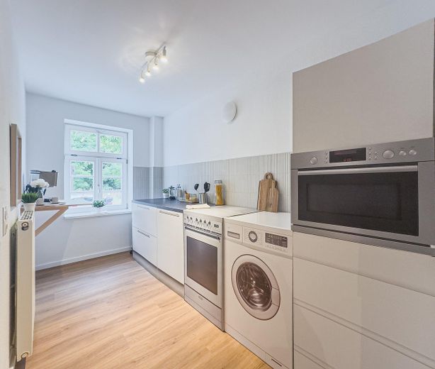 Die Wohnfläche umfasst rund 125 m² (DIN 277) und überzeugt mit einer cleveren Raumgestaltung, die sich perfekt für Paare, kleine Familien oder das Arbeiten von zu Hause eignet. Neben einem großzügigen Wohn- und Essbereich mit offener Küche stehen ein behagliches Schlafzimmer sowie zwei weitere flexibel nutzbare Räume zur Verfügung.