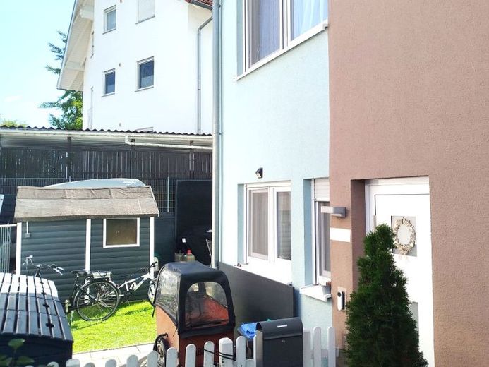 Im Erdgeschoss öffnet sich der Wohn- und Essbereich zum Garten hin - ein Ort, an dem Familie und Freunde zusammenkommen, Kinder spielen oder man einfach den Feierabend genießt. Dank des Sondernutzungsrechts an Garten genießen Sie hier Privatsphäre Ihrer eigenen Terrasse und den Luxus eines kleinen Außenbereichs - ohne großen Pflegeaufwand. Die offene Küche fügt sich harmonisch in das Wohnkonzept ein und macht den Raum zum Mittelpunkt des Alltags. Im Wohnbereich befindet sich zudem noch ein kleiner Abstellraum, der clever unter dem Treppenaufgang konzipiert wurde.