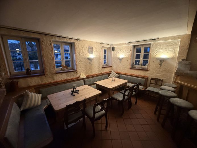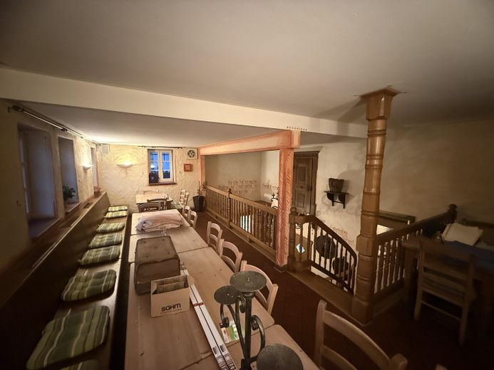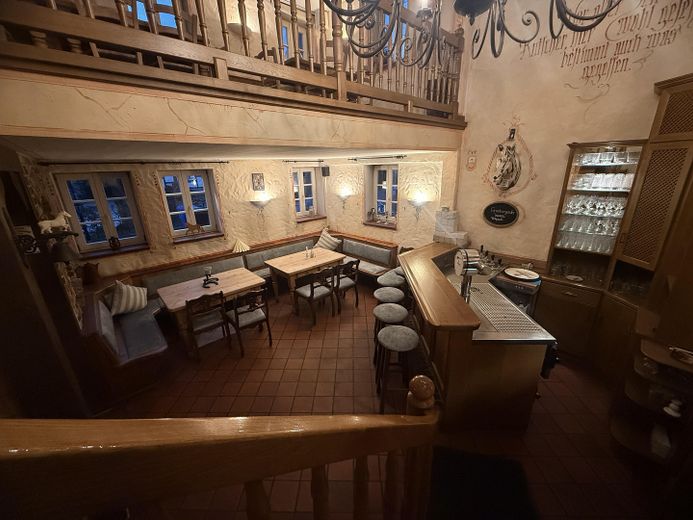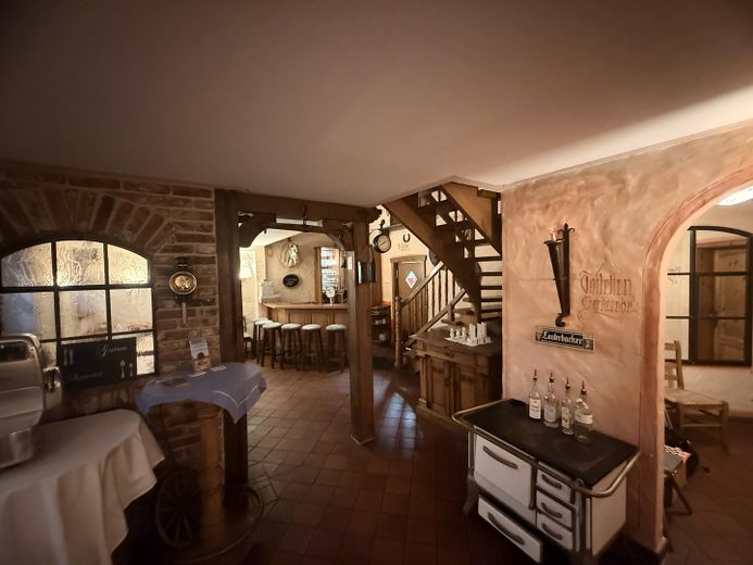 Die Immobilie verfügt über mehrere gemütliche Gasträume mit traditionellem, warmem Charakter. Holz, historische Elemente und eine klare Raumstruktur prägen das Ambiente. Die Galerieebene eignet sich ideal für Gesellschaften, Feiern oder separate Gästebereiche.