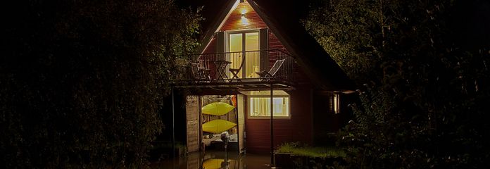 Reetgedecktes Bootshaus an der Mildenitz in Goldberg