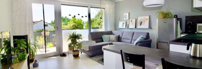 Hell und gemütlich eingerichtete Wohnung mit Terrasse und Garten in einem Zweifamilienbungalow.