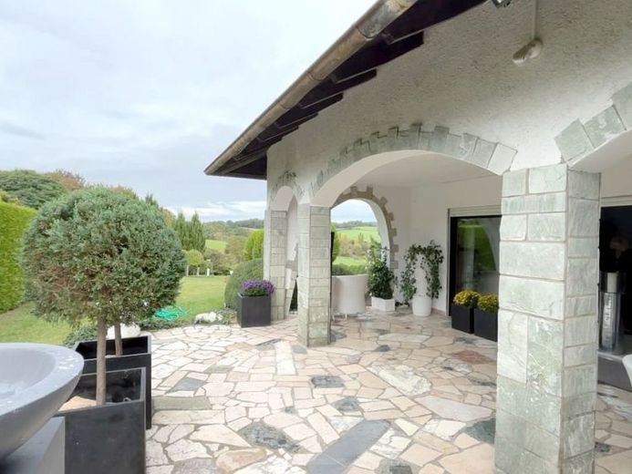 Von hier aus gelangt man auf die mediterran anmutende Sonnenterrasse, deren Rundbögen dem Außenbereich einen besonderen Charme verleihen. Ob Frühstück im Sommerwind, Lesen im Schatten alter Bäume oder gesellige Abende im Freien vor dem Außenkamin – dieser Platz lädt zum Innehalten und Genießen ein.