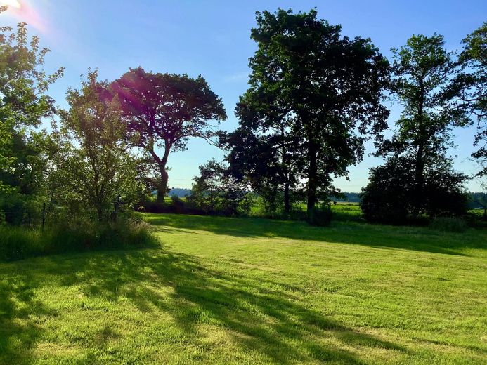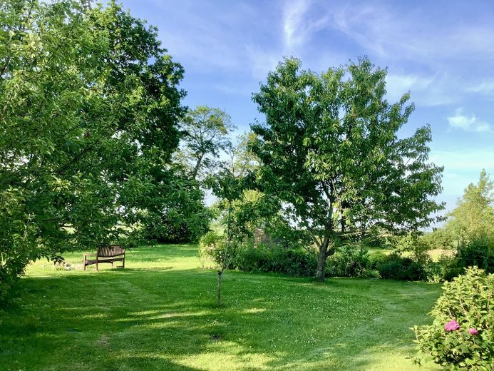 Die Immobilie liegt absolut idyllisch in einem großen Garten (3.244 m²) mit Obstbäumen (Mirabelle, Apfel, Pflaume, Birne, Kirsche, Maulbeere, Aronia etc.) und altem Baumbestand in der Ortsrandlage von Blomberg.