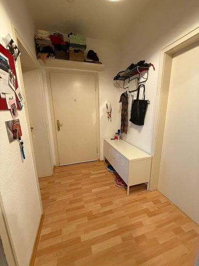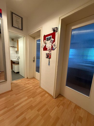 Die Wohnung bietet ein gut geschnittene Zimmer, ein Durchgangszimmer welches als Wohnzimmer genutzt werden, eine abgeschlossene Küche, ein Badezimmer mit Dusche, ein Badezimmer mit Badewanne, sowie einen praktischen Flur und einen großen Balkon zum Innenhof. Ideal für Singles und Paare.