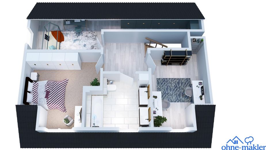 - Decken (EG + OG) und Wände (OG) mit weißem OSMO-Profilholz ausgeführt
