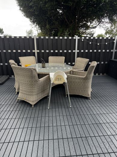 Die ca. 97 m² große Wohnung verfügt über einen separaten, ebenerdigen Zugang. Sie empfängt Sie mit einem einladenden Dielenbereich, der direkt in den großzügigen ca. 40 m² großen offenen Wohn-/Ess-/Küchenbereich führt. Bodentiefe Fensterelemente sorgen für viel Tageslicht und bieten Zugang zur Sonnenterrasse, die zur alleinigen Nutzung vorgesehen und eingezäunt ist.