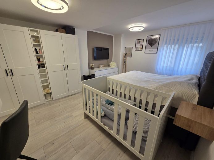 Zum Verkauf steht eine lichtdurchflutete 3-Zimmer-Eigentumswohnung im Erdgeschoss eines ursprünglich 1998 erbauten und ca. 2006 durch einen Anbau erweiterten Mehrparteienhauses mit insgesamt sechs Wohneinheiten (Wohnungsgrößen ca. 28 m² bis 147 m²).