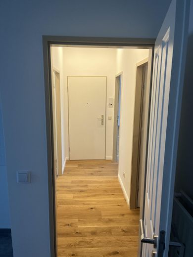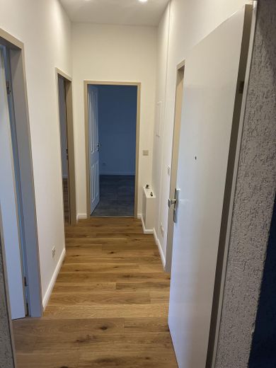 Wohnräume und Flur mit hochwertigem Eichenparkett.