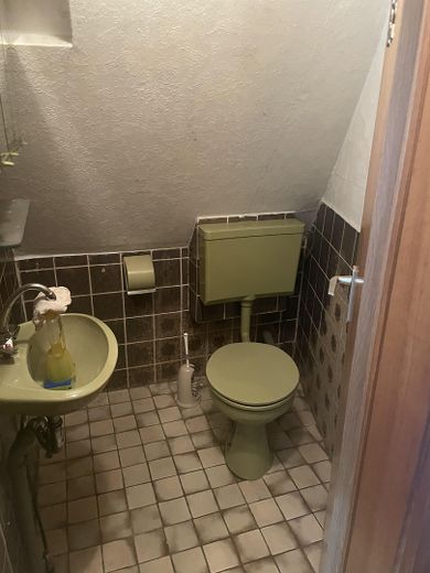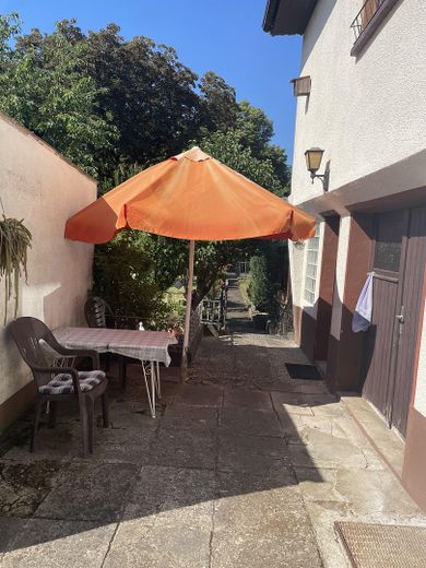 Doppelhaushaelfte in Frankfurt Harheim in begehrter Lage mit unverbaubarem Ausblick aus dem Garten. Kindergarten fußläufig erreichbar. Das Haus bietet Platz für 2 Familien, es ist aber noch Anbaureserve auf dem Grundstück vorhanden. Das Wohnhaus ist unterkellert, der Keller ist trocken. Im Hochparterre befinden sich 2 Bäder, ein Wohn- sowie ein Schlafzimmer und eine geräumige Küche. Die Wohnung im 1. OG ist eine Maisonettewohnung. In dieser befinden sich ein weiteres Bad, eine Küche, ein großes Wohnzimmer und 2 Schlafzimmer. Über den Flur im 1. OG erreicht man das Dachgeschoss, indem sich nochmals 2 Schlafzimmer sowie ein WC befinden. Über 2 der 3 Garagen steht zusätzlich eine kleine Einliegerwohnung zur Verfügung. Insgesamt ist der Zustand als sanierungsbedürftig zu beschreiben. Vor 8 Jahren wurde die Gasheizung jedoch erst erneuert. Der Garten ist gepflegt und bietet viel Raum und Ruhe zur Erholung, da unterhalb des Gartens nicht gebaut werden darf. Insgesamt beträgt die Grundstücksfläche 684 qm. Aktuelle Schätzungsurkunde liegt vor. Bitte keine Maklerangebote, das Haus wird privat verkauft.