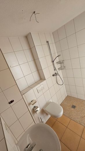 - kleines Badezimmer: bodenebene Dusche, WC und Waschbecken