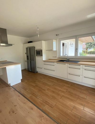Licht, Raum und Qualität – exklusives Architektenhaus mit Wellness, Technik und großem Garten. Dieses stilvolle Architektenhaus vereint modernes Design mit hoher Funktionalität und großzügigem Wohnkomfort – eingebettet in ein weitläufiges Grundstück von 1.720 m². Die durchdachte annähernd Barrierefreie Architektur, hochwertige Ausstattung und harmonische Raumaufteilung machen diese Immobilie zu einem echten Wohlfühlort. Der im Jahr 2012 errichtete Bungalow bietet 185 m² Wohnfläche auf einer Ebene. Bereits der Eingangsbereich überzeugt mit Weite und Licht und führt in drei geräumige Kinderzimmer, ein elegantes Familienbad mit integrierter Sauna, einen praktischen Flur mit Hausanschlussraum und Arbeitsbereich, sowie in den offenen Wohn-/Essbereich mit Küche und Kamin als Herzstück des Hauses. Das Schlafzimmer mit eigenem Badezimmer bietet Ruhe und Rückzug in stilvollem Rahmen. Ein vollflächiger Dachboden, der sich über das gesamte Haus erstreckt, schafft zusätzliche Nutzfläche – ob für Stauraum oder spätere Ausbauideen. Im Garten befindet sich ein kleiner Teich und ein zweiter Freisitz mit Grill- und Lagerfeuer mit Schwenkgrillmöglichkeit. Besonders hervorzuheben ist die geräumige Garage mit angrenzender Werkstatt, welche mit Strom-, Wasser- und Abwasseranschluss sowie eigenem Dachboden ausgestattet ist. Das mechanische Rolltor, ebenso wie das elektrische Zufahrtstor, lässt sich bequem per Fernbedienung bedienen – ideal für komfortables und sicheres Parken.