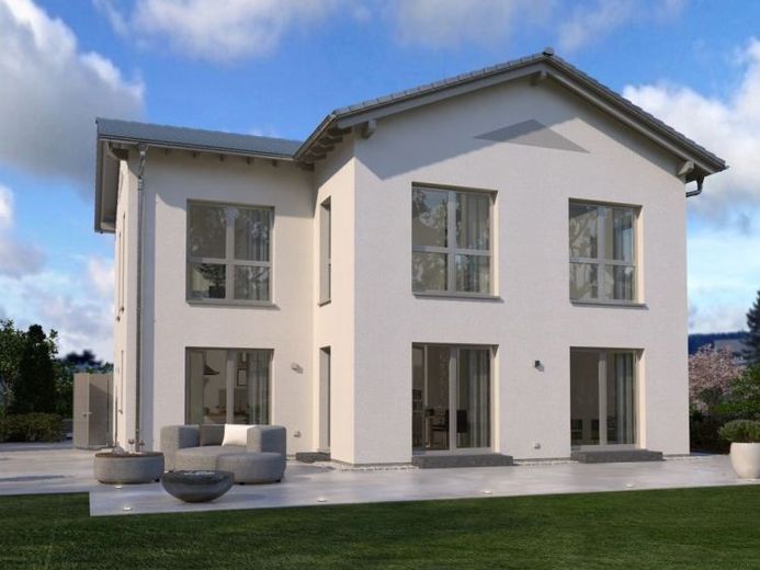Nicht nur durch ihre ungewöhnliche Größe und den extravaganten Grundriss zeichnet sich unsere Stadtvilla 23 mit Satteldach aus. Das Gebäude hält auch im Inneren viele kleine und große Besonderheiten bereit. Das erste Highlight offenbart sich bereits beim Betreten des Gebäudes: Durch die lichtdurchflutete Diele führt der Weg direkt ins Wohn-Esszimmer und der Blick durch die großen Fensterfronten hinaus in den Garten. Auch der Zugang zur Küche ist offen, wodurch ein zusätzliches Gefühl von Weite entsteht. Auf einer Fläche von 107 m² ist zudem noch ausreichend Platz für Hauswirtschaftsraum, Gäste-WC und ein zusätzliches Zimmer. Auch in der ersten Etage ist Größe Trumpf. Hier befinden sich drei Kinderzimmer mit eigenem Bad sowie eine wahre Wohlfühloase für die Eltern. Knapp 30 Quadratmeter stehen zur Verfügung - unterteilt in einen Schlafbereich, ein Ankleidezimmer sowie ein eigenes Bad mit Wanne, Dusche und WC.