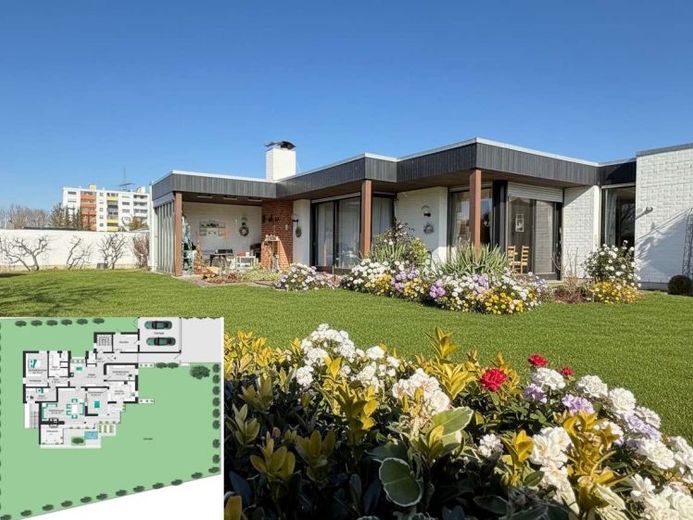 In bester Wohnlage gelegen, kann der Bungalow mit einer ebenerdigen, barrierefreien Wohnfläche von ca. 174 m², aufgeteilt in ca. 6-7 Zimmer, aufwarten. Zudem steht eine vergleichbare Nutzfläche im Untergeschoss/Keller zur Verfügung, welche neben diversen Funktionsräumen, ausgebaute Praxis-, Büro- oder auch Wohnräume besitzt. Auf dem üppigen Grundstück mit ca. 1.277 m², befindet sich auch die Doppelgarage.