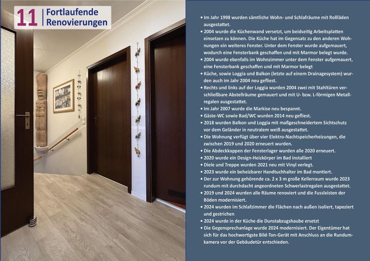 • 2019 und 2024 wurden alle Räume renoviert und die Fussleisten der Böden modernisiert.