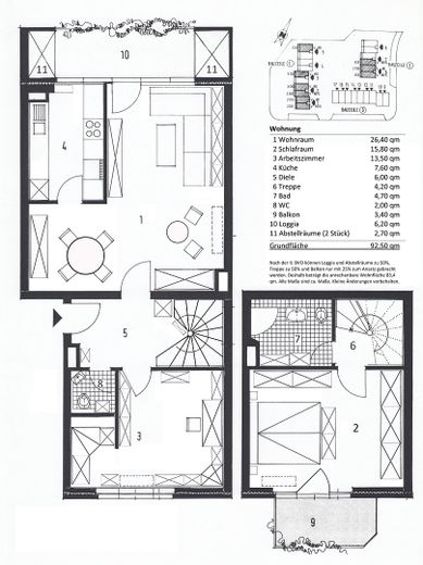 GRÖSSE: Ca. 92 qm Grund- und 83 qm Wohnfläche im 2. und 1. Obergeschoss rechts.