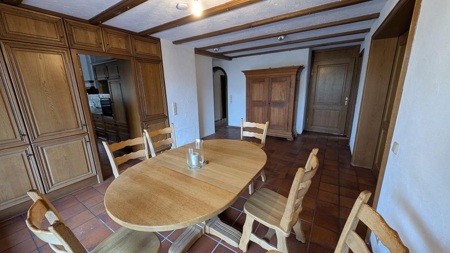 Einbauschrank im Schlafzimmer, Einbauküche, eventuell mit Elektrogeräten, WZ mit Holzofen, überdachte Terrasse mit offenen Kamin, zusätzlicher Hauswirtschaftsraum voll möbliert