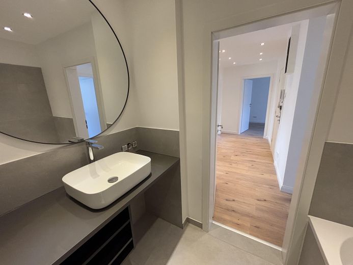 Zum Verkauf steht eine umfangreich modernisierte 5-Zimmer Eigentumswohnung mit zwei Balkonen, die sich sowohl zur Selbstnutzung als auch Kapitalanlage eignet (siehe Grundriss Nr. 2). Die erst kürzlich abgeschlossenen Arbeiten umfassten die Neugestaltung der gesamten Wohnung, einschließlich des Bades und der Küche u.A. mit verputzten und geschliffenen Wänden, Fliesen im Großformat 60x120 cm und 80x80cm und LED-Deckenspots in Flur und Bad. Die neue und offene Küche ist ausgestattet mit modernen grifflosen Fronten, Geschirrspüler, Induktionskochfeld, Kühl/Gefrier-Kombi, Backofen in moderner Höhe, uvm.