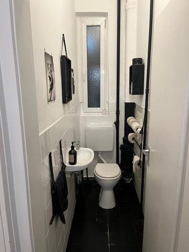 Das schöne Atelier/Büro überzeugt durch ein großes, einladendes Schaufenster und eine klare, funktionale Raumaufteilung. Insgesamt stehen vier großzügige Räume sowie ein verbindender Flur zur Verfügung. Ein Bad, eine separate Toilette und eine Küche mit separatem Abstellraum sind ebenfalls vorhanden. Die aktuell eingebaute Küche gehört dem derzeitigen Mieter, kann jedoch nach Absprache übernommen werden. Aus der Küche gelangt man in einen kleinen grünen Außenbereich im Hinterhof. Eigener Kellerraum ist ebenfalls inklusive.