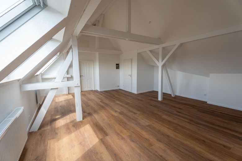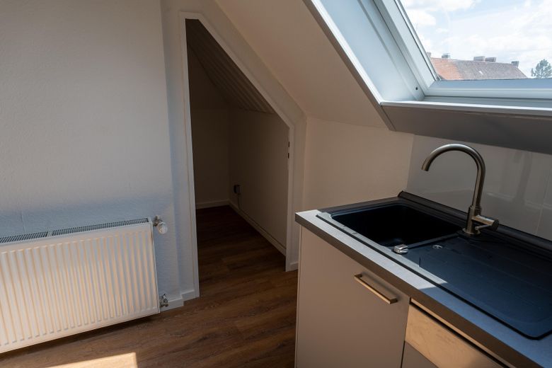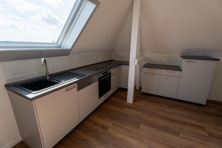 Die Wohnung überzeugt durch einen großzügigen Grundriss mit zwei hellen Zimmern, einer modernen Einbauküche und einem ansprechenden Badezimmer. Der besondere Dachgeschoss-Charakter verleiht dem Zuhause eine gemütliche Atmosphäre mit viel Charme.