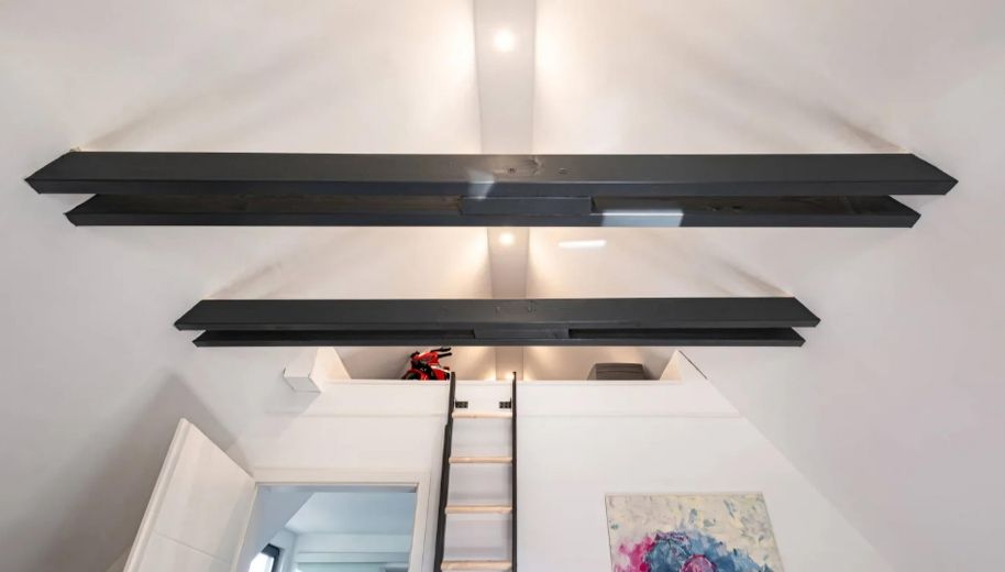 Eine Wendeltreppe führt in das ausgebaute Dachgeschoss. Dort befinden sich ein Kinderzimmer mit Zugang zum Spitzboden sowie ein Schlafzimmer mit separater Ankleide und Balkon. Besonders hervorzuheben ist das stilvolle Badezimmer mit großen Fensterflächen und einer freistehenden Badewanne. Sowohl das Erdgeschoss als auch das Bad sind mit einer komfortablen Fußbodenheizung ausgestattet. Hochwertige Oberflächen, dezente Einbauleuchten, sichtbare Holzbalken und die erstklassige Dacheindeckung unterstreichen die hohe Verarbeitungsqualität des Hauses.