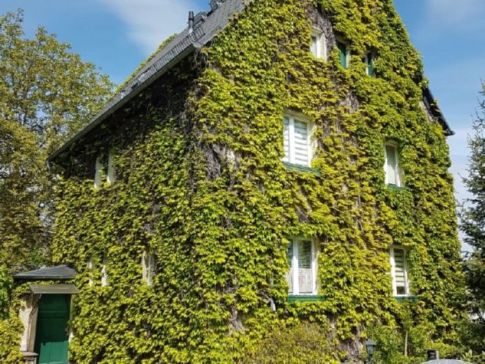 Die Fassade ist mit wildem Wein bewachsen und verleiht dem Haus eine einzigartige, naturverbundene Ausstrahlung und vermeidet auch das Aufheizen im Sommer.