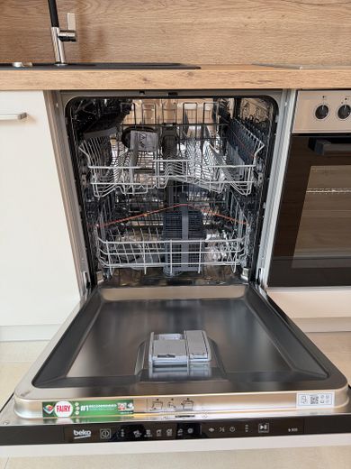 Die exklusive Designerküche ist vollständig ausgestattet und fügt sich harmonisch in den Wohnraum ein – ideal für Mieter, die Wert auf Qualität und Ästhetik legen.