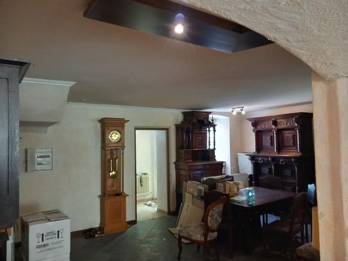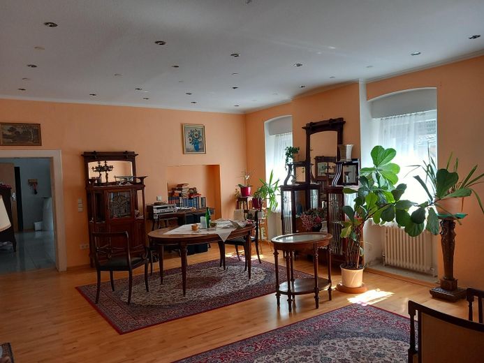 Großes teilrenoviertes Haus zu verkaufen. Ca. 254,53 qm Wfl, ca. 217,58 qm eh. Gastronomie und 413,74 qm beheizte Halle (Zugang über eine breite Treppe). Gesamtgrundstück 1.374 qm.