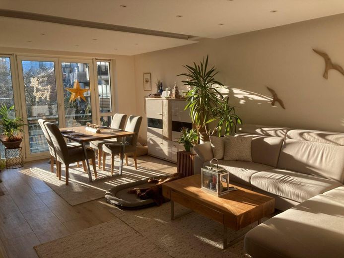 Die Wohnung ist mit einer Fussbodenheizung in allen Zimmern ausgestattet, mit Sensoren regulierbar. Sie ist in allen Räumen mit Steinfliesen in Holz- Optik und -Haptik ausgestattet (R11, also auch für Nasszellen geeignet), im Schlaf-, Wohn- und Gästezimmer zusätzlich mit Schallschutz unter den Fliesen, sowie im Bad mit einer Wasserschutzfolie darunter.
