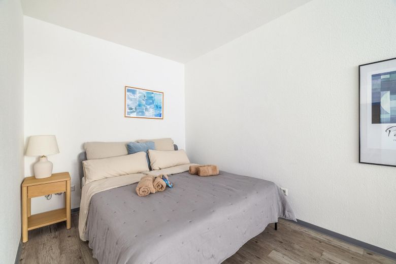 einem langen Tag. Der Schlafbereich bietet ein komfortables Bett, das erholsame Nächte