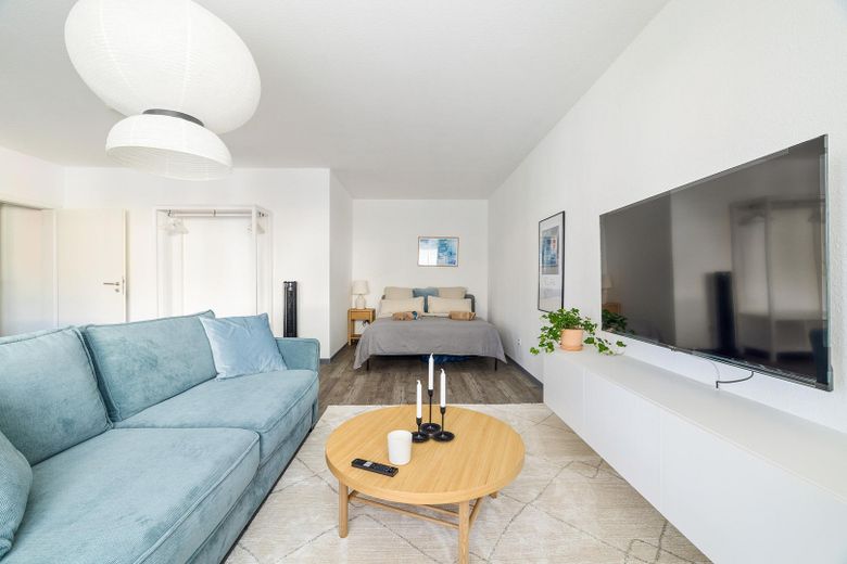 durch seine moderne und stilvolle Einrichtung besticht. Der Wohnbereich ist mit einer