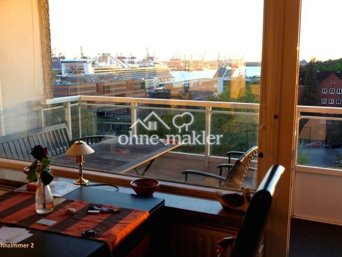 Möblierte 1,5 Zimmer Wohnung mit Balkon im 7. OG mit herrlichem Blick auf den Hamburger Hafen in sehr gepflegtem u. bewachten (Concierge) Hochhaus. Mindestmietdauer: 6 Mon.