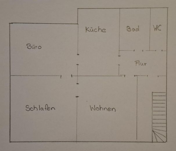 Die Wohnung verfügt über 1 Schlafzimmer, 1 Wohnzimmer, 1 Büro außerdem 1 Küche, 1 Bad mit Badewanne und 1 WC.