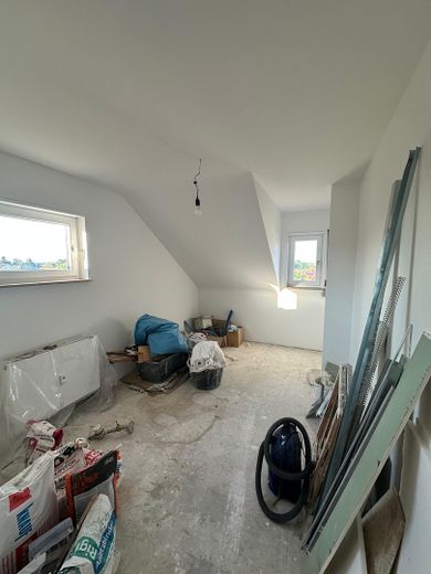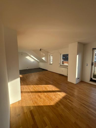 Helle und offene Räume: Das Herzstück der Wohnung ist die großzügige, offene Wohnküche, die zum Kochen, Essen und Verweilen einlädt. Große Fenster und Dachfenster sorgen den ganzen Tag für eine helle und freundliche Atmosphäre.