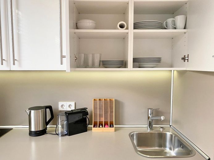 Diese hochwertig möblierte 2-Zimmer-Wohnung wird komplett eingerichtet vermietet. Die Mindestmietdauer beträgt 12 Monate.
