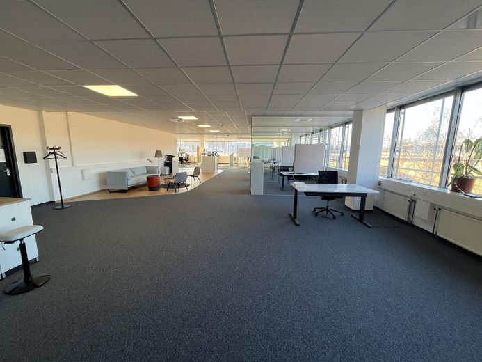 Moderne, helle Bürofläche mit großen Fensterfronten