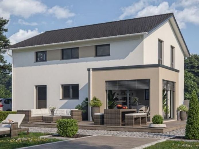 Der Preis für das schlüsselfertige Basishaus umfasst die Fundamentplatte sowie das Grundstück. Zudem ist eine Photovoltaikanlage mit einer Leistung von 7,47 kWp und ein Batteriespeicher mit 7,68 kWh enthalten. Zusätzlich fallen Baunebenkosten in Höhe von ca. 68.000 Euro an, sowie Kosten für die Küche, die Außenanlagen (z.B. 25.000 Euro) und die Garage. Das Haus entspricht dem KfW-40-Standard.