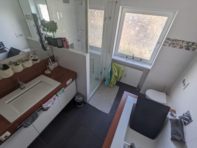 Das Badezimmer ist hochwertig ausgestattet und verfügt sowohl über Badewanne als auch Dusche sowie eine elektrische Fußbodenheizung, die zusätzlichen Komfort bietet. Die gesamte Wohnung befindet sich in einem sehr gepflegten Zustand. Die Heizkörper sind mit modernen Smarthome‑Thermostaten ausgestattet, wodurch sich der Energieverbrauch komfortabel und effizient steuern lässt.