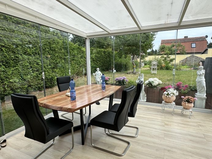 Fenster: Bodentiefe Fensterfronten und großflächige Glaswände sorgen für einen harmonischen Übergang zwischen Innen- und Außenbereich und lassen maximales Tageslicht herein.